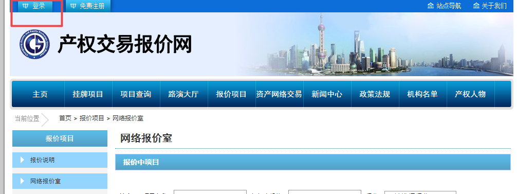 (2)可直接搜索“產(chǎn)權(quán)交易報(bào)價(jià)網(wǎng)”點(diǎn)擊左上角“登錄”鍵進(jìn)入。