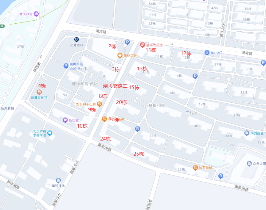 麓楓和苑2號棟項目位于麻園路以東、天馬路以南、瀟湘南路以西、湖大支路一以北,目前已引進“靚蝦二哥、湖大出版社、稅務(wù)局”等企業(yè)、單位入駐。