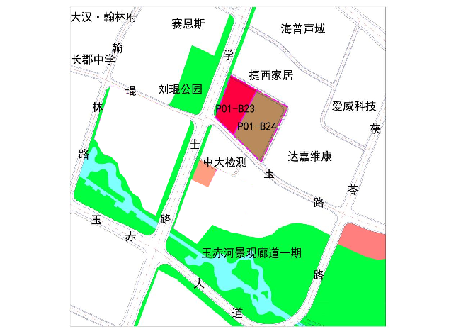 P01-B23:規(guī)劃為商業(yè)用地(B1),凈用地面積約16.5畝,容積率6.0,限高100米,建筑密度≤40%,綠地率≥30%,規(guī)劃總建筑面積65568m2,地上已建5層,面積約18000m2,地下室兩層,面積約18000m2。