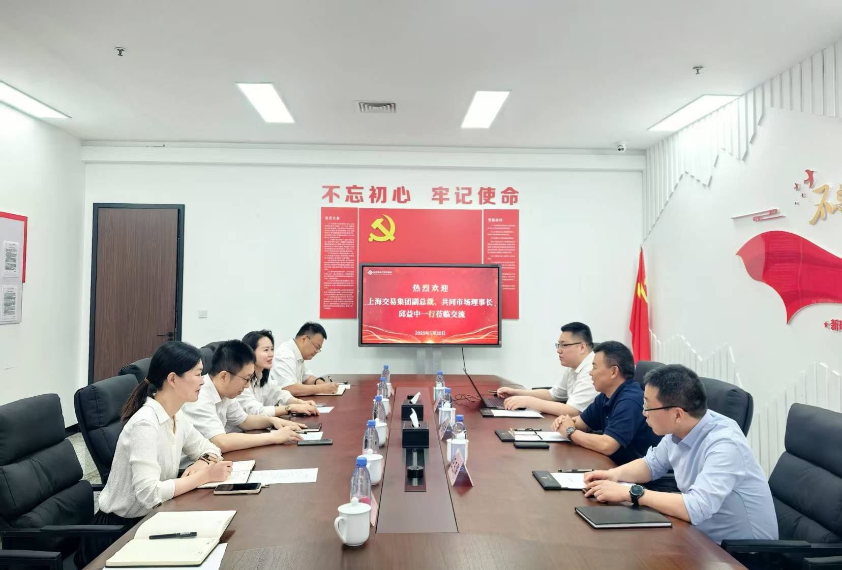 5月22日,上海交易集團(tuán)副總裁、長江流域產(chǎn)權(quán)交易共同市場(以下簡稱“共同市場”)理事長邱益中一行到長沙數(shù)字集團(tuán)下屬長沙聯(lián)交所走訪調(diào)研并開展座談交流。長沙聯(lián)交所黨支部書記、總經(jīng)理嚴(yán)愛萍主持工作交流座談會。長沙數(shù)字集團(tuán)黨委委員、董事、副總經(jīng)理陳西參加交流。雙方圍繞區(qū)域要素市場協(xié)同發(fā)展、陽光采購、創(chuàng)新業(yè)務(wù)培育、打造特色專業(yè)人才隊(duì)伍等進(jìn)行了深入探討。